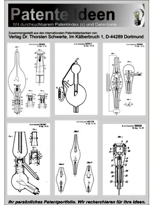 Normalerweise können es sich nur Firmen leisten umfangreiche Patentrecherchen, wie die hier angebotene, erstellen zu lassen. Die Zusammenstellung solcher Sammlungen in gut archivierbarem Format ist aufwendig und setzt kostenpflichtige Datenbankprogramme voraus. Manche amerikanische Firmen berechnen für die Recherche bis zu 3,50 € pro Patent! Unser Verlag bietet Ihnen hier diese Leistungen zu einem unschlagbar niedrigen Preis an. Sollte Ihnen ein Sie interessierendes Thema fehlen, so fordern Sie uns und wir erstellen Ihnen ein Angebot, zu dem Sie nicht "Nein" sagen können (allerdings nur für private und nicht kommerzielle Zwecke, für Firmenanfragen existieren andere Bedingungen (Anfragen erwünscht)).